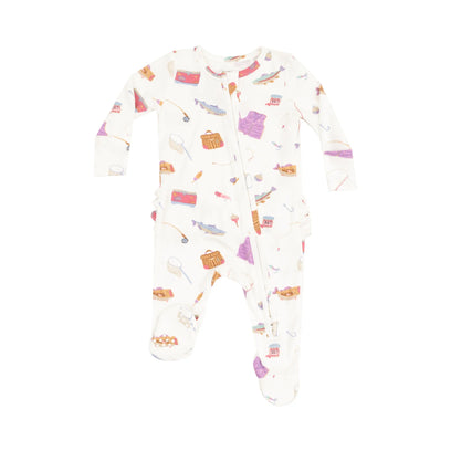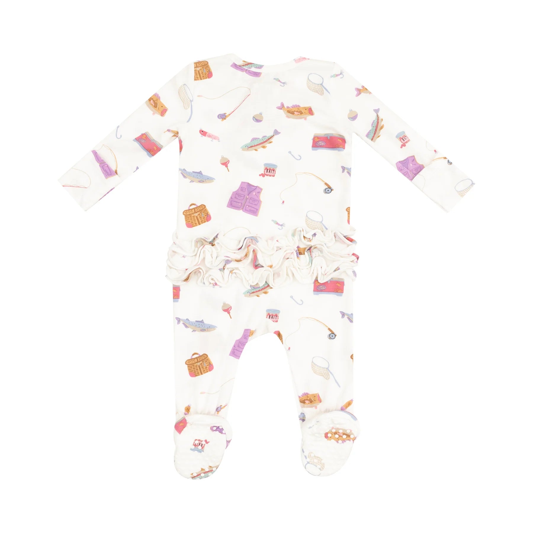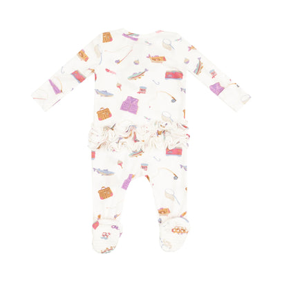 2 WAY ZIPPER RUFFLE BACK FOOTIE- Fishing Things 6-9 month