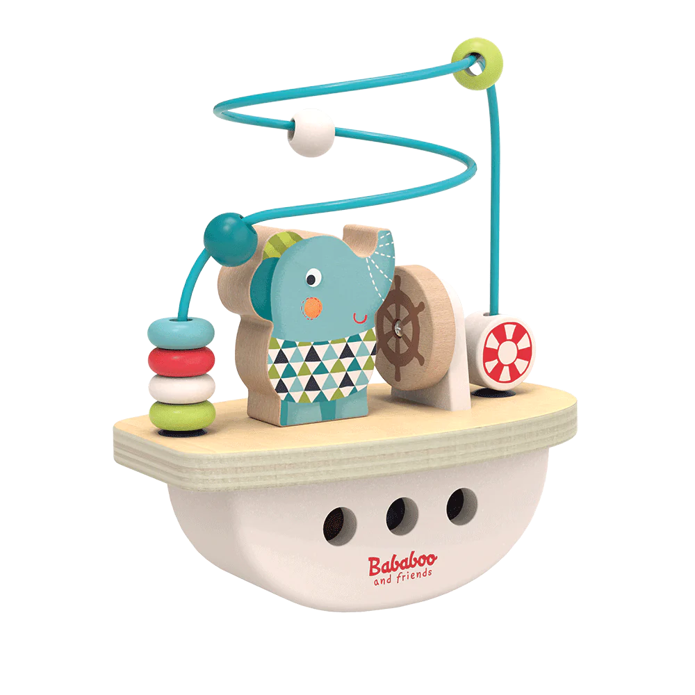 Will everything on the boat stay in balance during the rough seas? Lolo's Happy Boat Ride is a motor skills game that promotes creativity as well as coordination skills. The rounded hull not only teaches children about balance, it also provides an additional challenge while children move the wooden elements across the track.