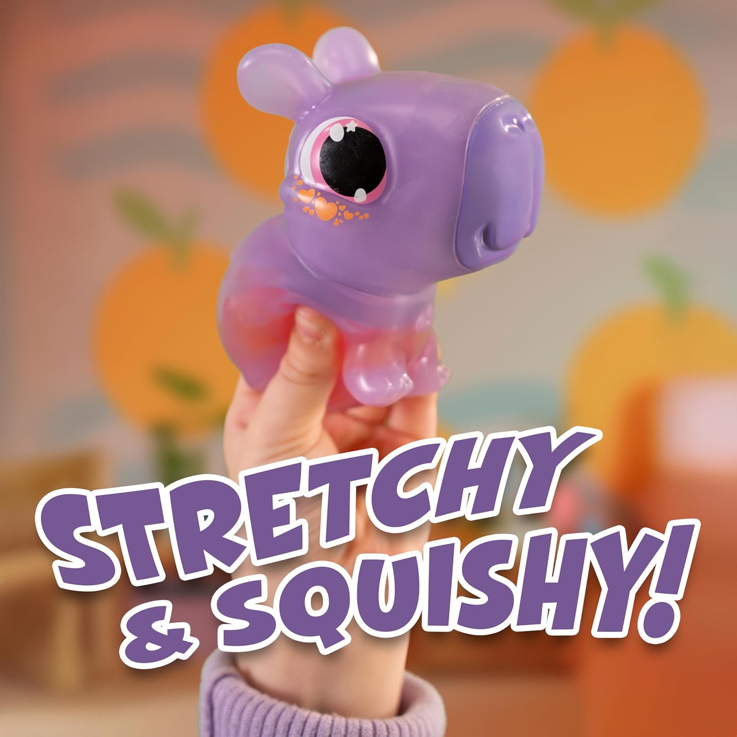 - SQUISHY & SENSORY: Super stretchy and squishy, this adorable Capybara offers the ultimate sensory experience. Plus, give her belly a squeeze to discover the hidden tangerine!