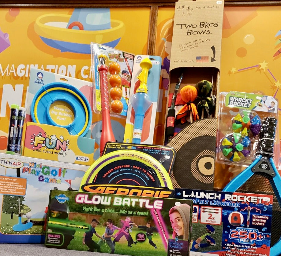 Trying to please a kid who can't stay still and despises being inside? Let us help! Order a $50 or $100 Active and Outdoor package customized for your family. Tell us in the note section of your shopping cart how many people will be playing, what their ages are, and any other relevant information. We'll build you the perfect package!