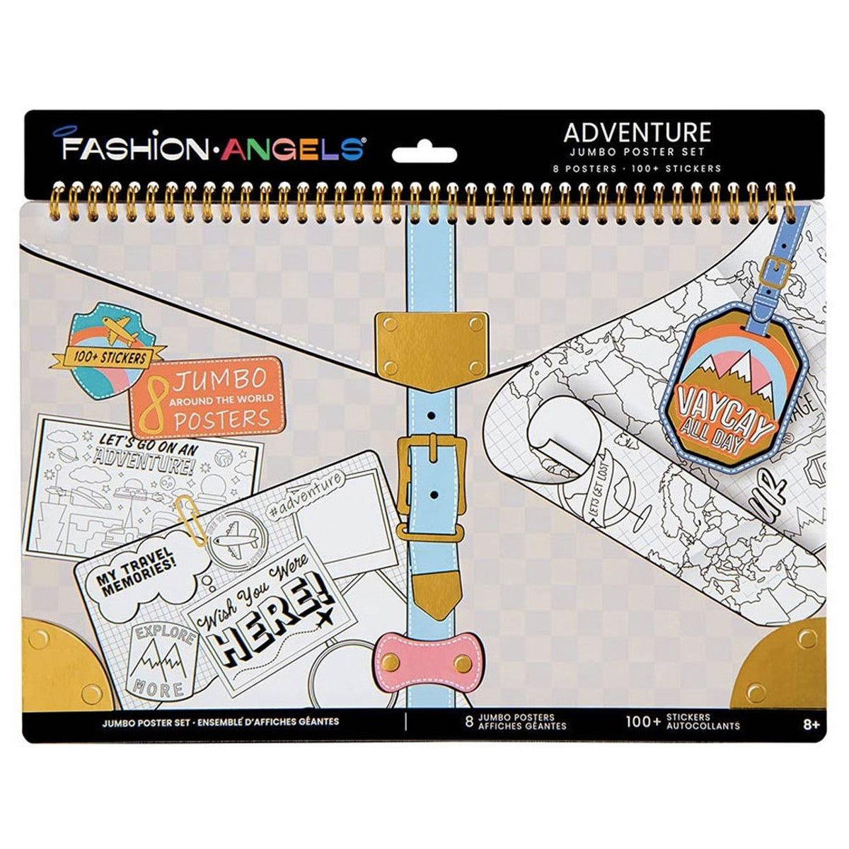 Take coloring to the next level with a large-scale poster! This travel-themed coloring kit includes a jumbo spiral-bound portfolio containing 8 color-in poster and activity pages, plus over 250 stickers to personalize the design. Any room or car can become an art gallery!