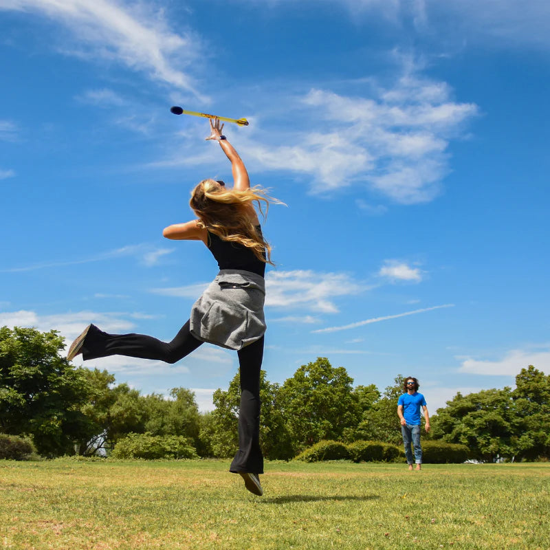 A new spin on throw and catch! Equipped with an ambidextrous spin dial and a soft foam tip, this high-flying dart soars through the air. Grip it by its butt, launch with flair, and watch it glide—perfect for nailing throws without nailing your friends.