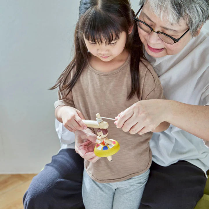 This ballerina encourages children to explore cause and effect by pulling the string with different strengths to control the spinning speed. As they grasp and pull, they improve hand-eye coordination and fine motor skills. Children can also infuse storytelling, enhancing the play experience. This adds a layer of creativity and engagement, transforming the experience into an opportunity for emotional expression and cognitive growth. This toy promotes logical thinking and problem-solving skills. To play, simply attach the handle, thread the string through the spindle, and pull quickly to make the ballerina spin!