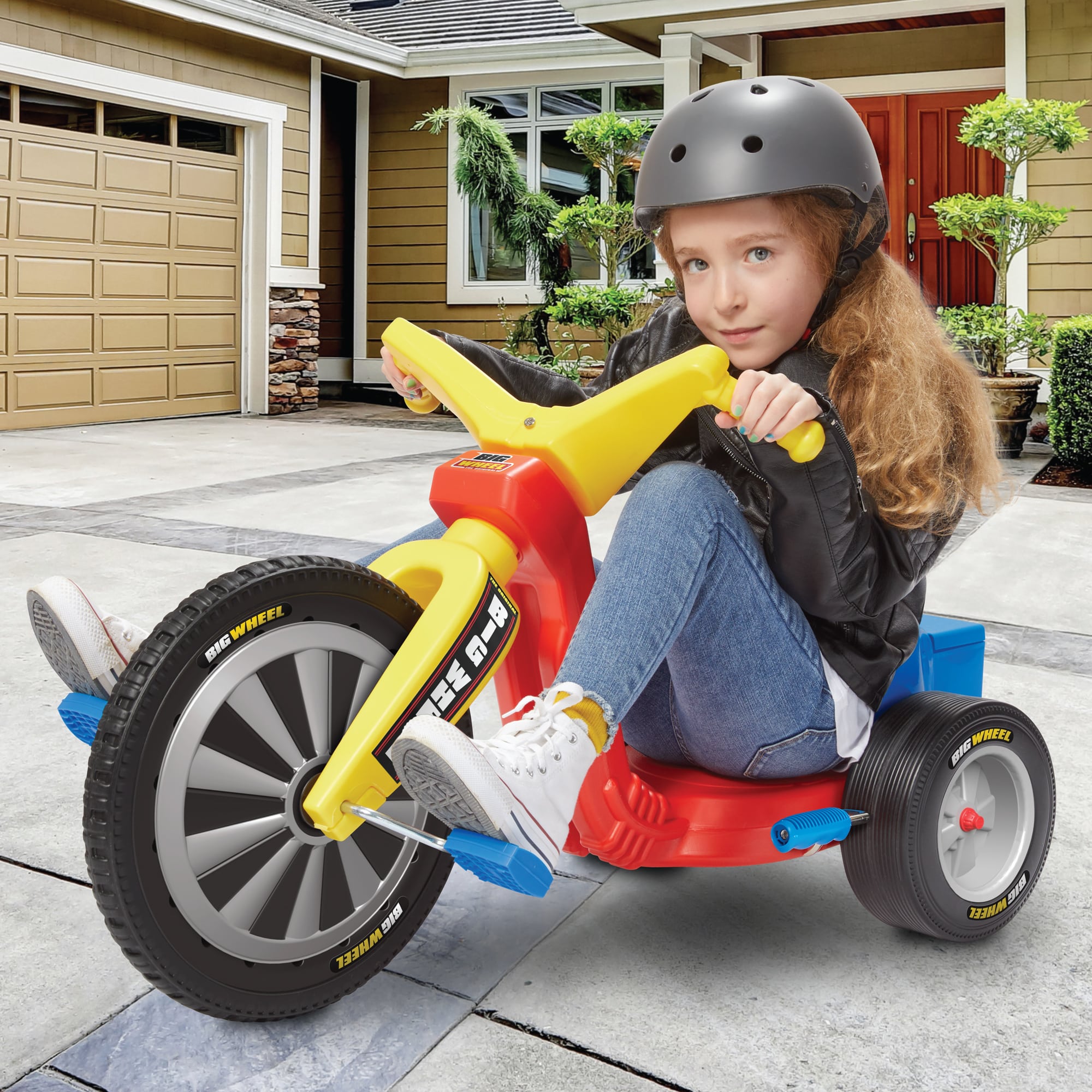 Big Wheel offers big kid adventure for little ones to help them develop riding confidence and a growing sense of independence. Big Wheel is a preschooler’s first ride offering the security of low steady wheels that grip the sidewalk with the thrill of signature spin outs and fast-action pedal power. This ride-on with the signature large 16” front wheel is a family must-have for everyone who wishes their child to experience neighborhood adventures that become legend.