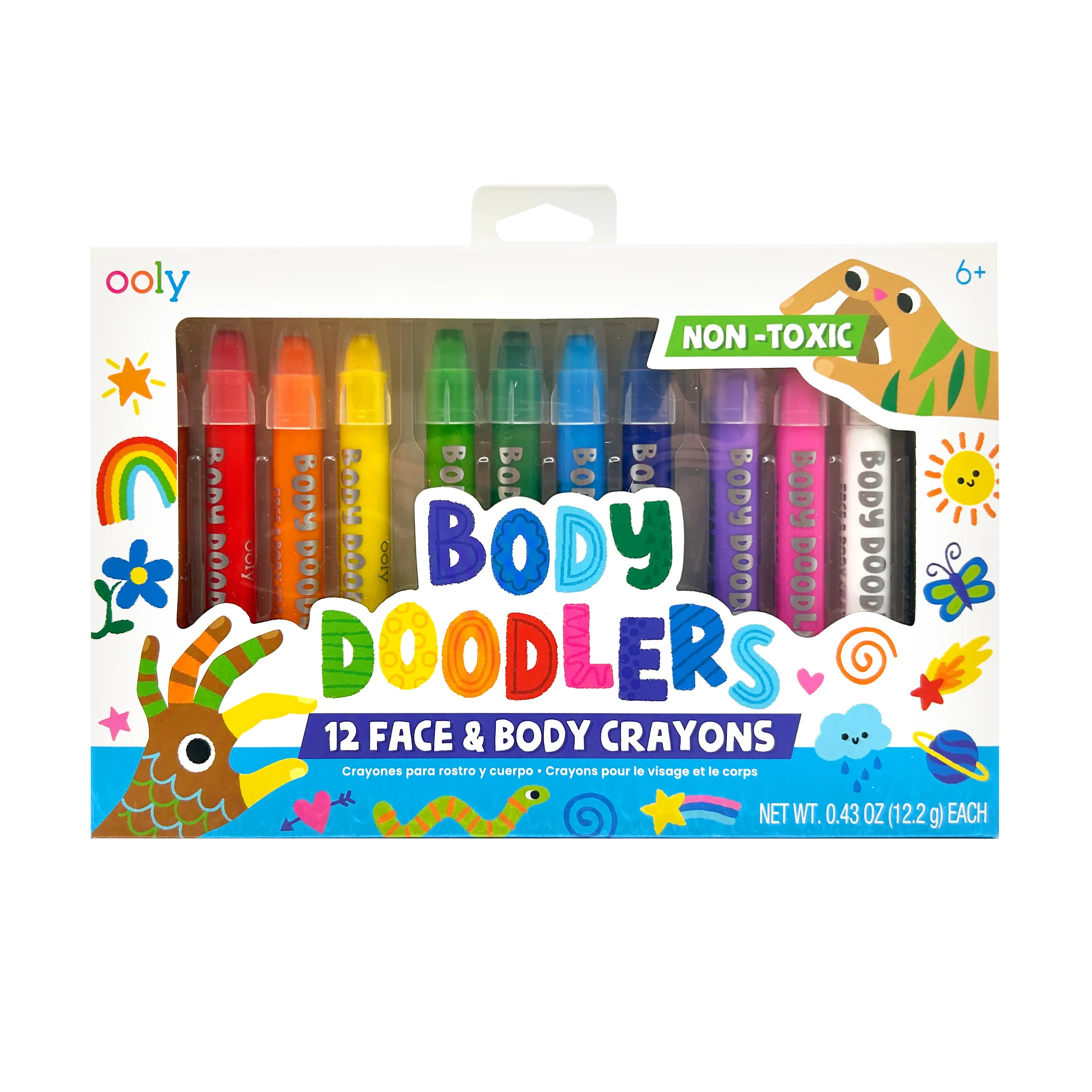 Are you feeling like a clown? A punk rocker? A human flower? Express those whims with this set of face and body crayons! It includes 12 temporary colors so you can transform yourself into whatever you dream up, and then easily wash it off whenever you want. Each non-toxic body crayon twists up so you can add more color whenever you need. Body art crayons are great for adding activities like face painting to a birthday party, or for turning a humdrum afternoon into a creative adventure!