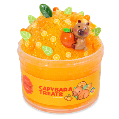 Experience a unique slime adventure with the Peachybbies | Capybara Treats Slime. Crafted with a clear slime base, this product features squishy sponge 'jelly cubes' that offer a satisfying squish and pop, creating a new texture for slime enthusiasts. It's perfect for those who enjoy an elevated sensory experience.