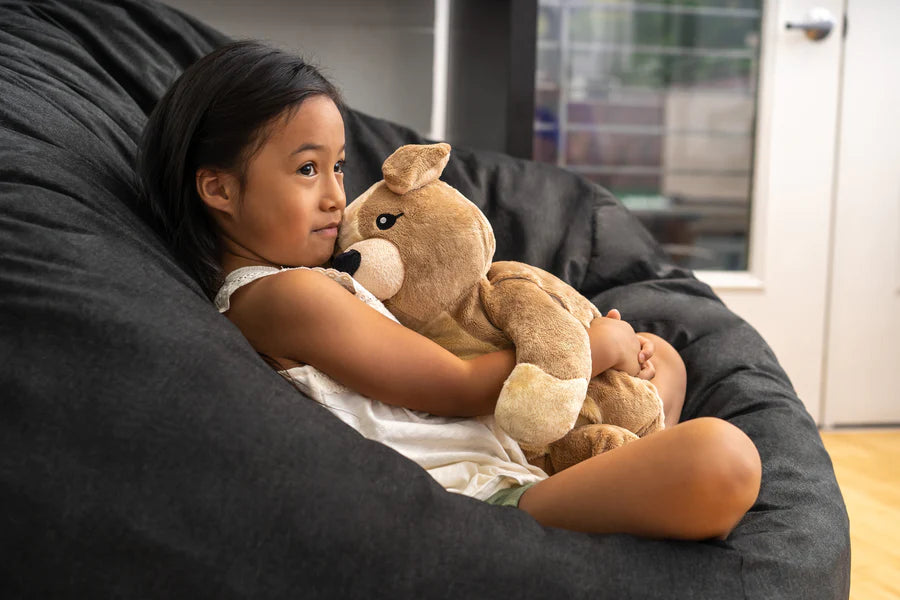 USING YOUR HUGIMAL: When you snuggle up with your Hugimal on your lap, or lay with it on your tummy or chest, it becomes your secret weapon against stress and anxiety, helping you feel safe, grounded, calm and secure. Use in moments of anxiety like transitions, travel, bedtime — or anytime you could use a calming hug.