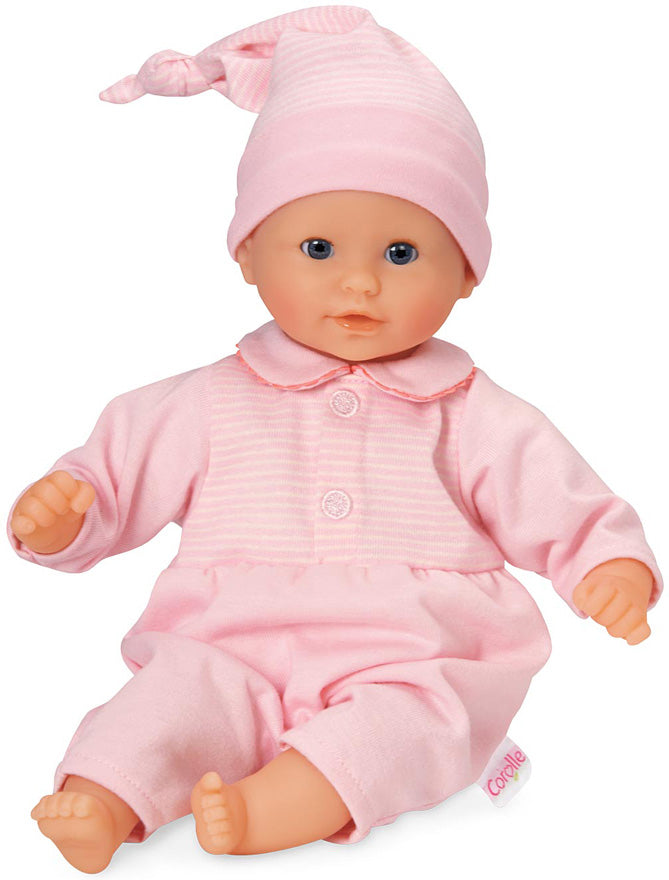 Give a cuddle and aaah, is that the subtle scent of vanilla? How soothing! This poseable 12" baby, designed in France, is ultra-soft and has eyes that close when it's lullaby time. Charming Pastel has a nightgown and cap, ready for bed. This sweet doll helps develop the caring touch that all of us need.Recommended ages 1 1/2-5 yrs, from Corolle.