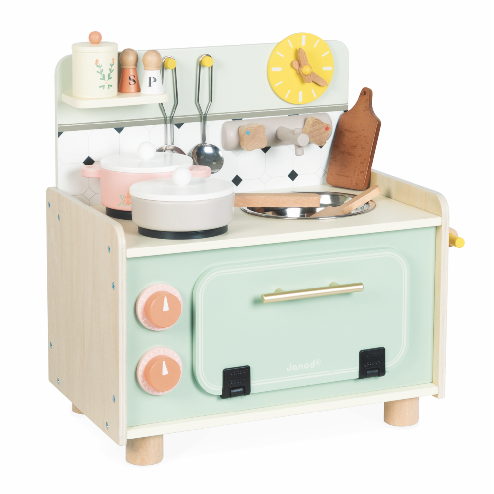 It's almost time to eat, so it's time to get in the kitchen and prepare a delicious meal! With their little wooden kitchen, children from the age of 3 can imagine crazy stories at the stove and imitate the grown-ups. Equipped like the real thing and with 9 accessories, this toy kitchen is perfect for playing dinette and inventing all kinds of recipes!