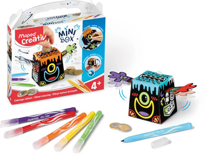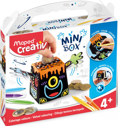 The Maped Creativ Velvet Coloring Piggy Bank lets your child color and decorates their very own piggy bank! Velvet-covered cardboard is easy to color because there are no 'lines' to worry about, and the black backdrop makes colors pop. And when the piggy bank is assembled every time they drop money into the top slot the arms flap celebrating their savings. The complete kit contains everything you need to decorate and then play: a velvet-covered cardboard piggy bank and 6 Maped Jungle Washable Fine Tip Markers. Maped Creativ offers a collection of innovative, ultra-fun and stimulating activity kits for children of all ages! All kits are designed to be made with their own hands with minimal adult assistance to produce unique creations to play with and display.