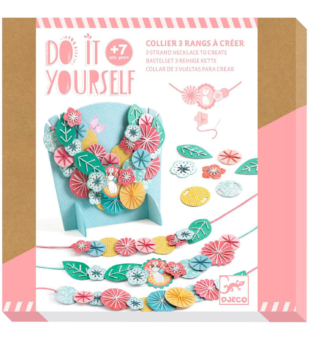 The Djeco set consists of everything you need to make the beautiful necklaces. In addition, a holder is also included to display your creations.