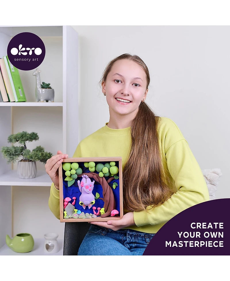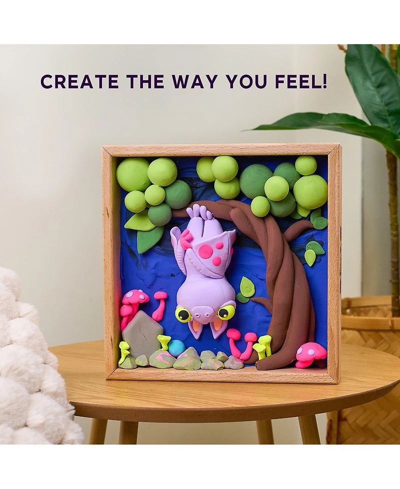 Wooden shadow-box craft (8.3 square, 2 deep) with foam air-dry clay. Knead, layer, and let dry-no oven required. Includes frame, clay, tool, and guide. Ages 8+.