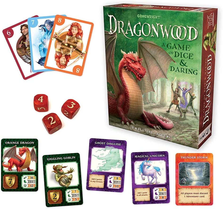 Dare to enter Dragonwood! Deep in the heart of this mythical forest lurk angry ogres, giggling goblins, and even the famed and fearsome fire-breathers themselves! Collect sets of adventurer cards to earn dice, which you will use to roll against your foes. Stomp on some fire ants, shriek at a grumpy troll, or strike the menacing orange dragon with a magical silver sword. Choose your strategy carefully because the landscape of Dragonwood is ever-changing. Only the bravest will overcome the odds to emerge victorious! It may be hard to imagine, but Dragonwood, with its vast array of richly illustrated cards, started out looking much different than where it ended. Inventor Darren Kisgen submitted a prototype without a single illustration - just simple words and numbers written in marker on blank white cards. Well apparently that's all was needed, because within moments, our play testers were enraptured with the simple-to-learn but deeply engaging fantasy-themed game. Illustrator Chris Beatrice beautifully captured the wit and humor depicted in Darren's words to create one of our most visually appealing games.