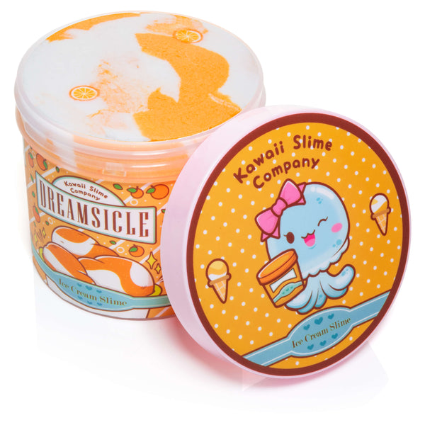 The look and feel of Kawaii Ice Cream Slime is always mind blowingly realistic. This Dreamsicle slime has an orange and vanilla ice cream scent, with orange and white swirled slimes that blend into a delicate orange color. 12 oz come in each ice cream pint, making it perfect to share between siblings or friends, or for adults to enjoy. This scent is a real crowd pleaser!