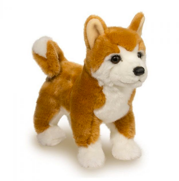 This feisty Shiba Inu plush makes a point of proving himself. Whether it’s showing off that he’s the fastest and cutest of all the other dogs or stubbornly insisting that his way is the right way, he’s sure to prove himself as a lovable cuddly companion to you. From his black leatherette nose to his fluffy arced tail, Dunham was made with the discriminating dog lover in mind. His design features the golden orange coat, small triangular ears, and curled tail of the Shiba breed and his facial detailing gives this stuffed dog an extraordinarily engaging expression that is sure to win fans. Dunham is designed in an upright standing pose but his high quality materials and soft fill make him an appealing soft plush toy that is ideal for hugs and cuddles when he’s not running around howling about how awesome he is.