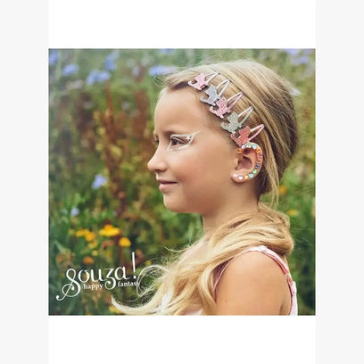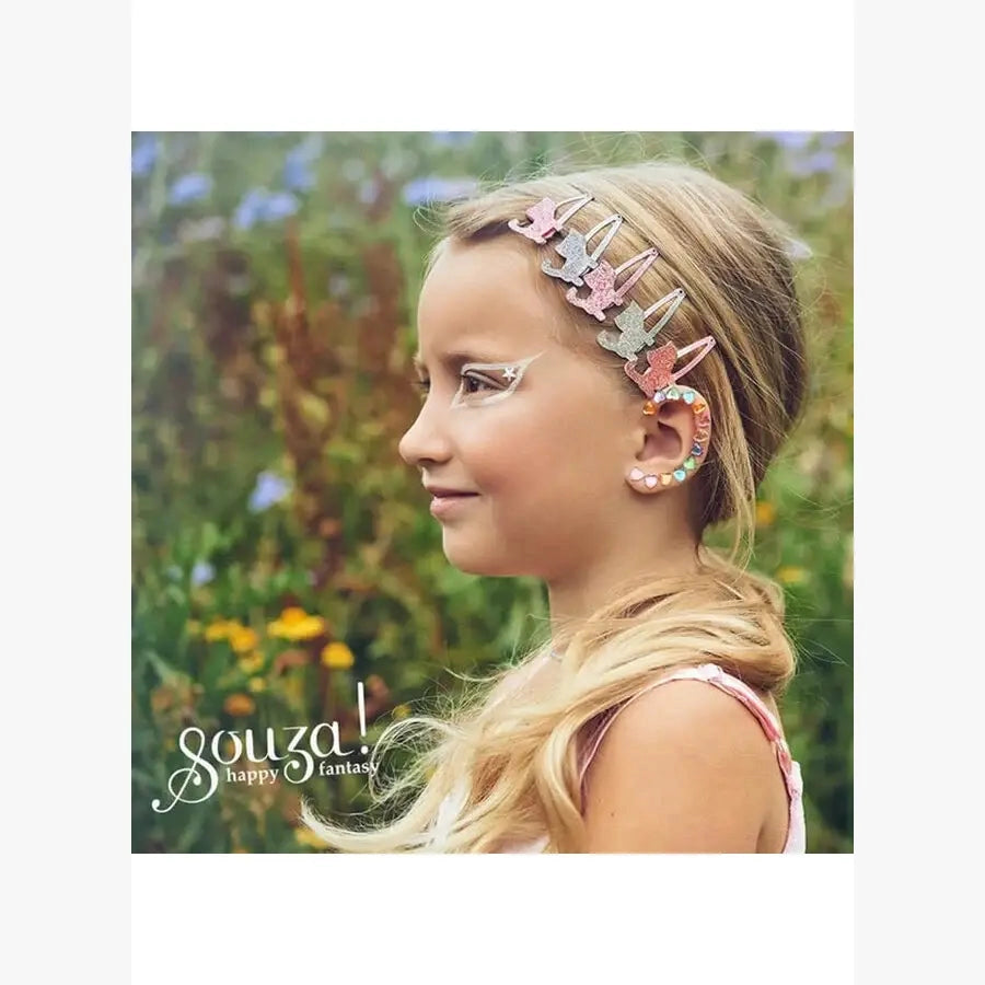 The Souza Ear stickers are whimsical, self-adhesive ear decorations featuring adorable unicorn-themed designs in pastel colors and sparkly accents. Perfect for adding a touch of magic to any outfit, these stickers are a fun, no-piercing alternative to earrings. Safe for kids and easy to apply or remove, they’re ideal for parties, dress-up days, or just everyday sparkle. Each set includes multiple unicorn designs to mix and match for a truly enchanted look.