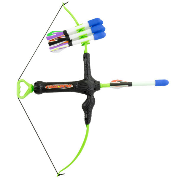 - OUTDOOR FUN: Faux Bow 4.0 The best faux bow yet. Amazing alternative to a bow and arrow with the feel of a real bow in your hands with arrows flying at amazing speeds shooting over 100 ft.