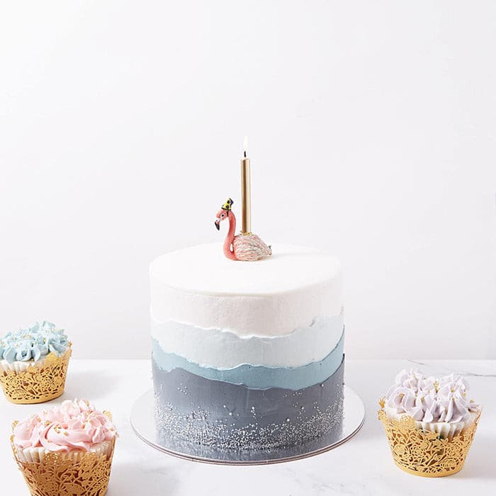 The Flamingo Cake Topper brings a fun flare to all of your birthdays, anniversaries, and other special occasions! This tropical topper is made of porcelain and hand-painted in intricate detail, from its fuchsia feathers to its yellow spotted party hat. Each Camp Hollow cake topper features a gold luster cup that holds a standard size birthday candle.