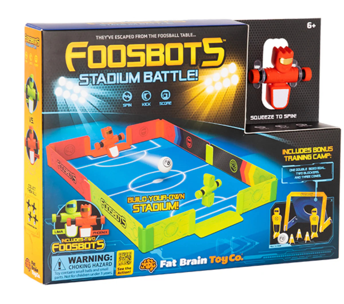- Includes 2 Foosbots, 2 balls, buildable stadium, buildable training gear, coin to flip