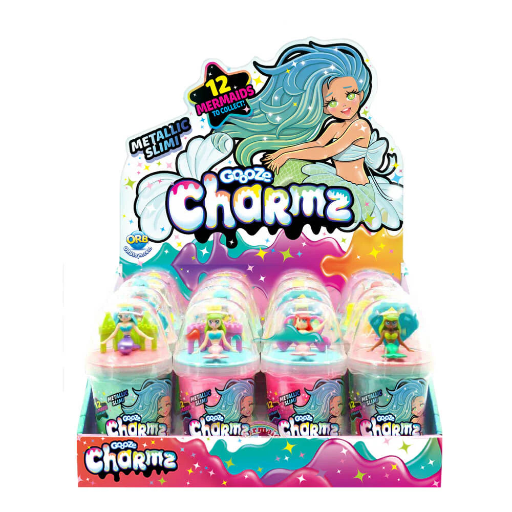 It’s the best of all worlds! Goooze™ Charmz Mermaid slimi is a pair of twinkly metallic slimis each with a collectible mermaid looking for her new home.