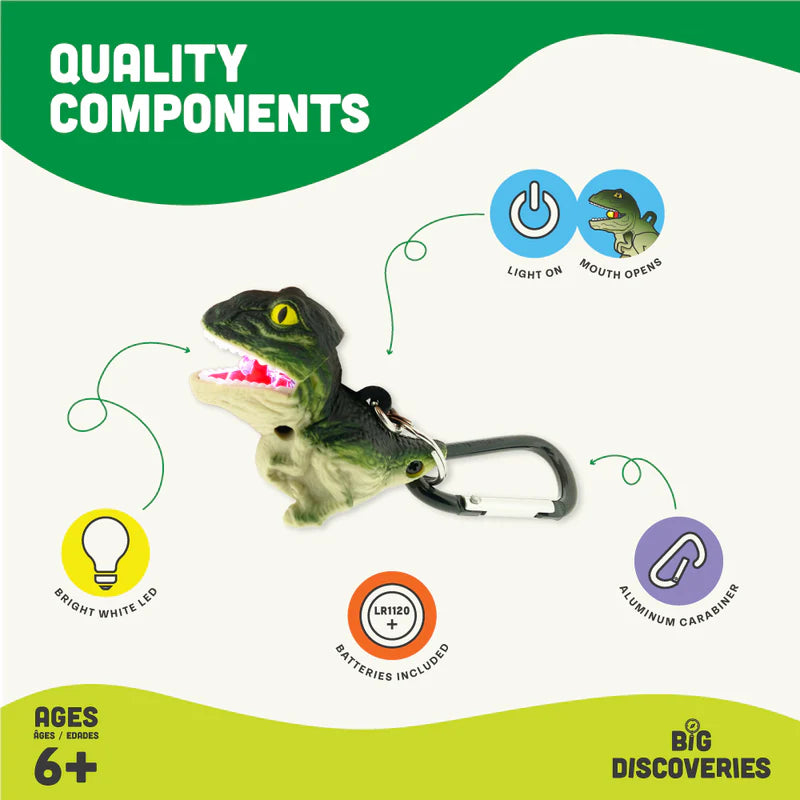 Light up the night with a friend! Push the button on the back of the T-Rex WildLight to open the dino’s mouth, and watch a super-bright white light emerge. Batteries are included. Ages 6 and up.