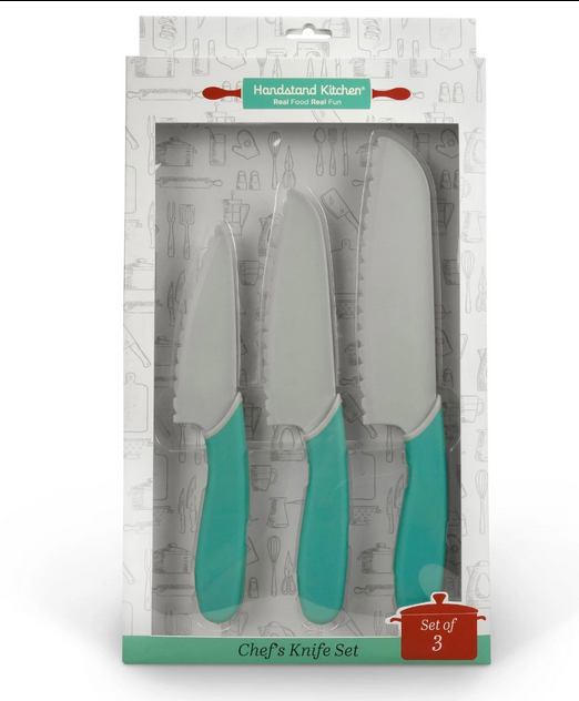 No matter how you slice it, this set has you covered with three of our kid-safe BPA-free, multi-purpose serrated knives, one size for every cutting need. From chopping vegetables, to cutting fruit to slicing bread, and much more, our handy large, medium and small knives will make cutting a breeze!