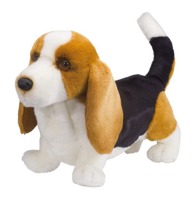 Harold, our delightful Basset Hound stuffed animal, realistically captures everything about this stately breed that a dog lover could hope for! Harold features sad droopy eyes, wrinkly neck folds, pendulous ears, and a long curved tail. His tri-colored coat is made with ultra soft fabric that begs to be petted and cuddled. A realistic leatherette nose and airbrushed details on his face and around the edges of his ears bring additional realism to Harold’s design. Invite this gorgeous plush hound to live with you today or send him home to a Basset Hound lover. Wherever he goes, he’s sure to win fans with his sweet, expressive face!