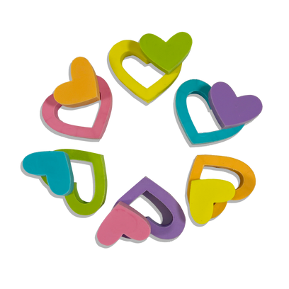 - A set of 6 heart-shaped puzzle erasers in bright, fun colors