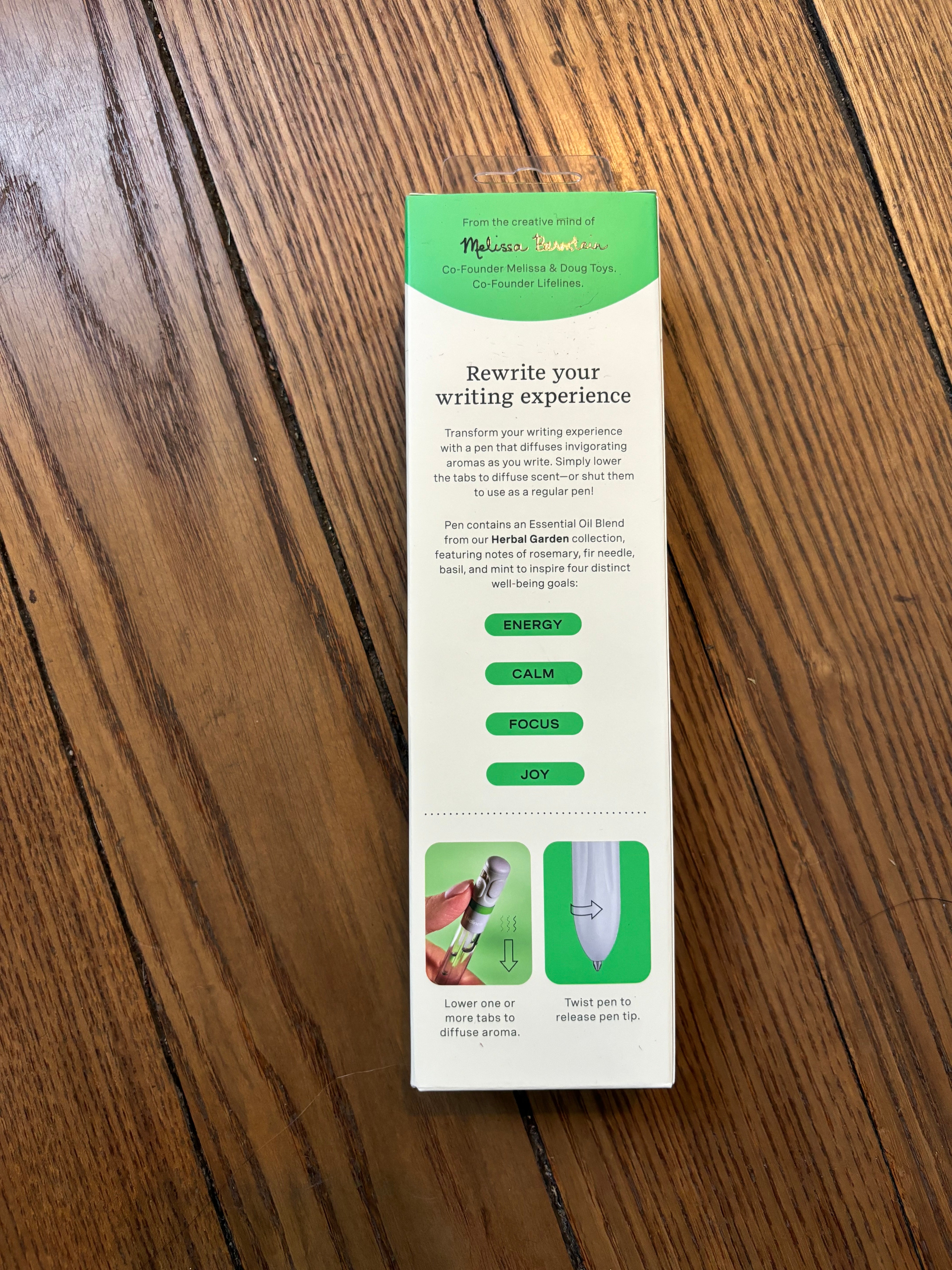 Transform your writing experience with a pen that diffuses invigorating aromas as you write. Simply lower the tabs to diffuse scent-or shut them to use as a regular pen!