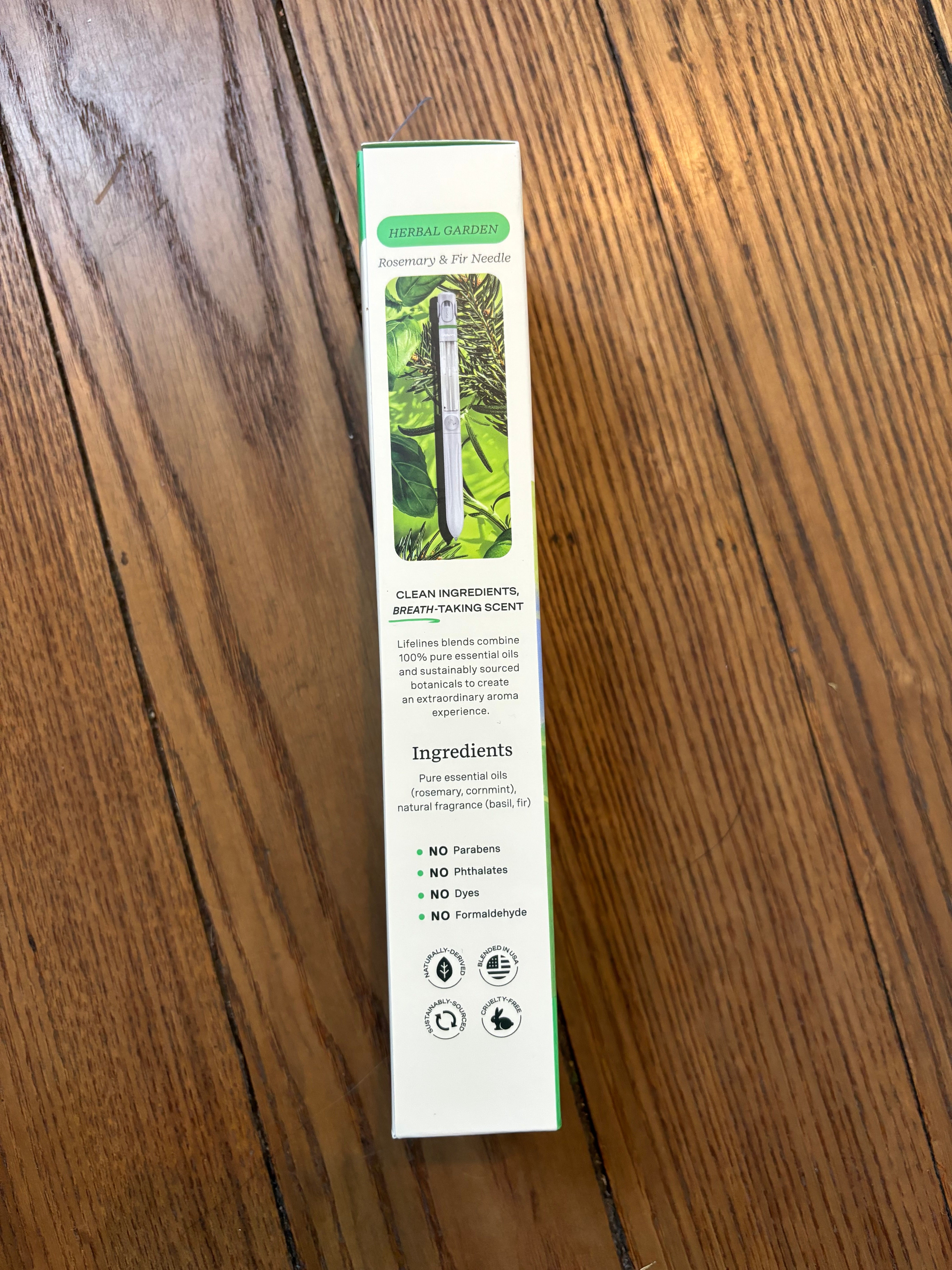 Pen contains an Essential Oil Blend from our Herbal Garden collection, featuring notes of rosemary, fir needle, basil, and mint to inspire four distinct well-being goals: