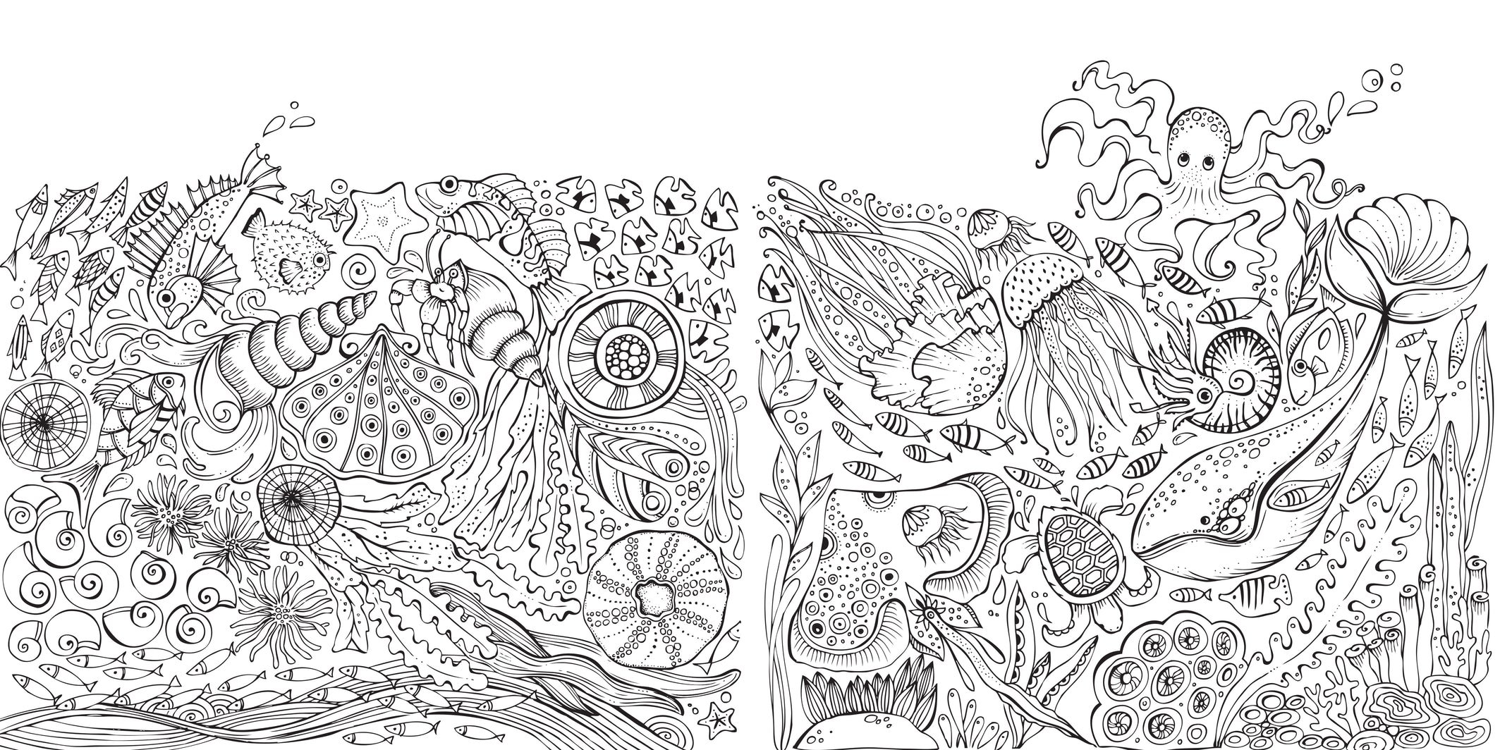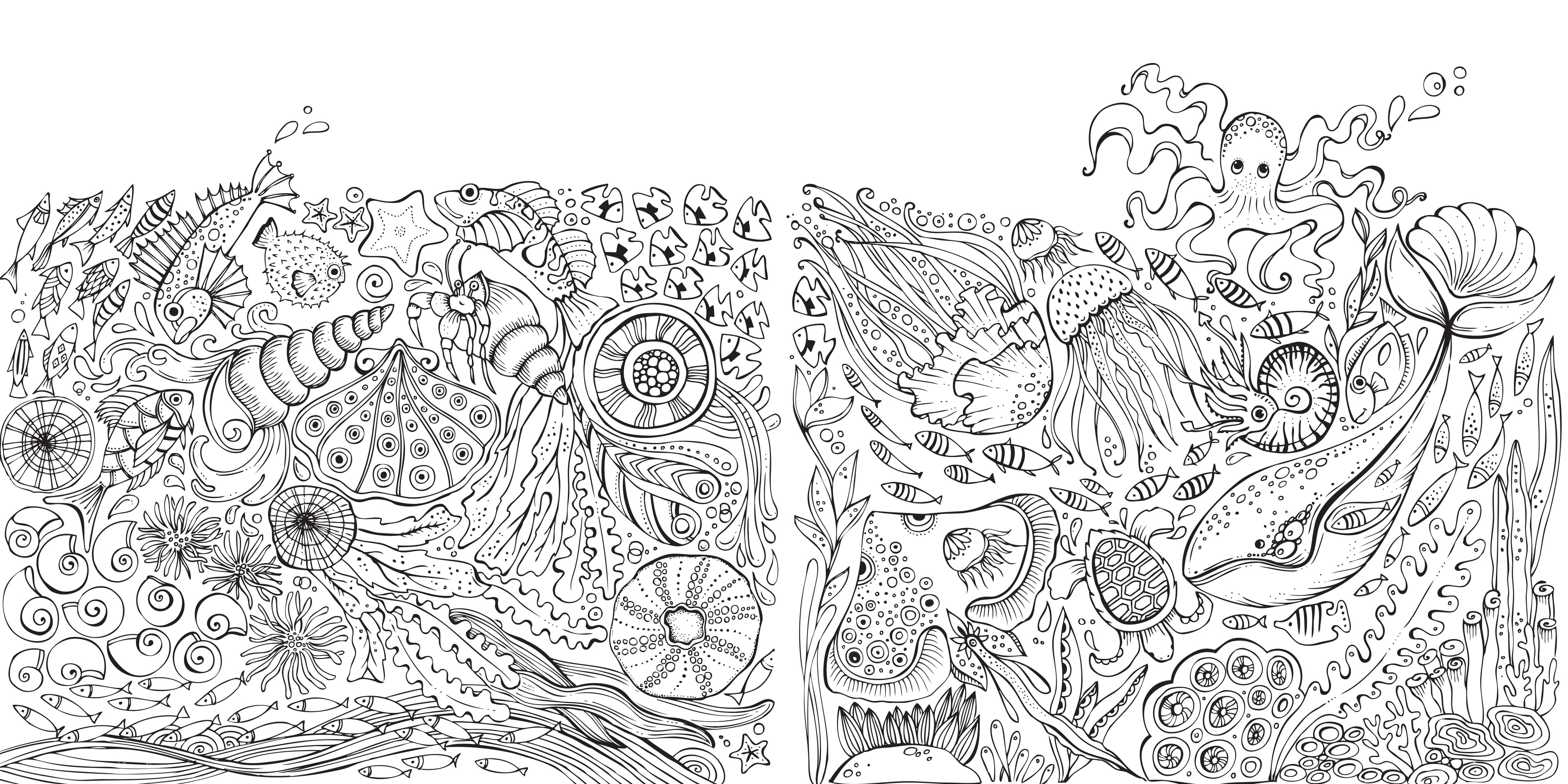 - Two-page spreads: Experience the grandeur of the ocean with large-format scenesthat allow for immersive coloring.