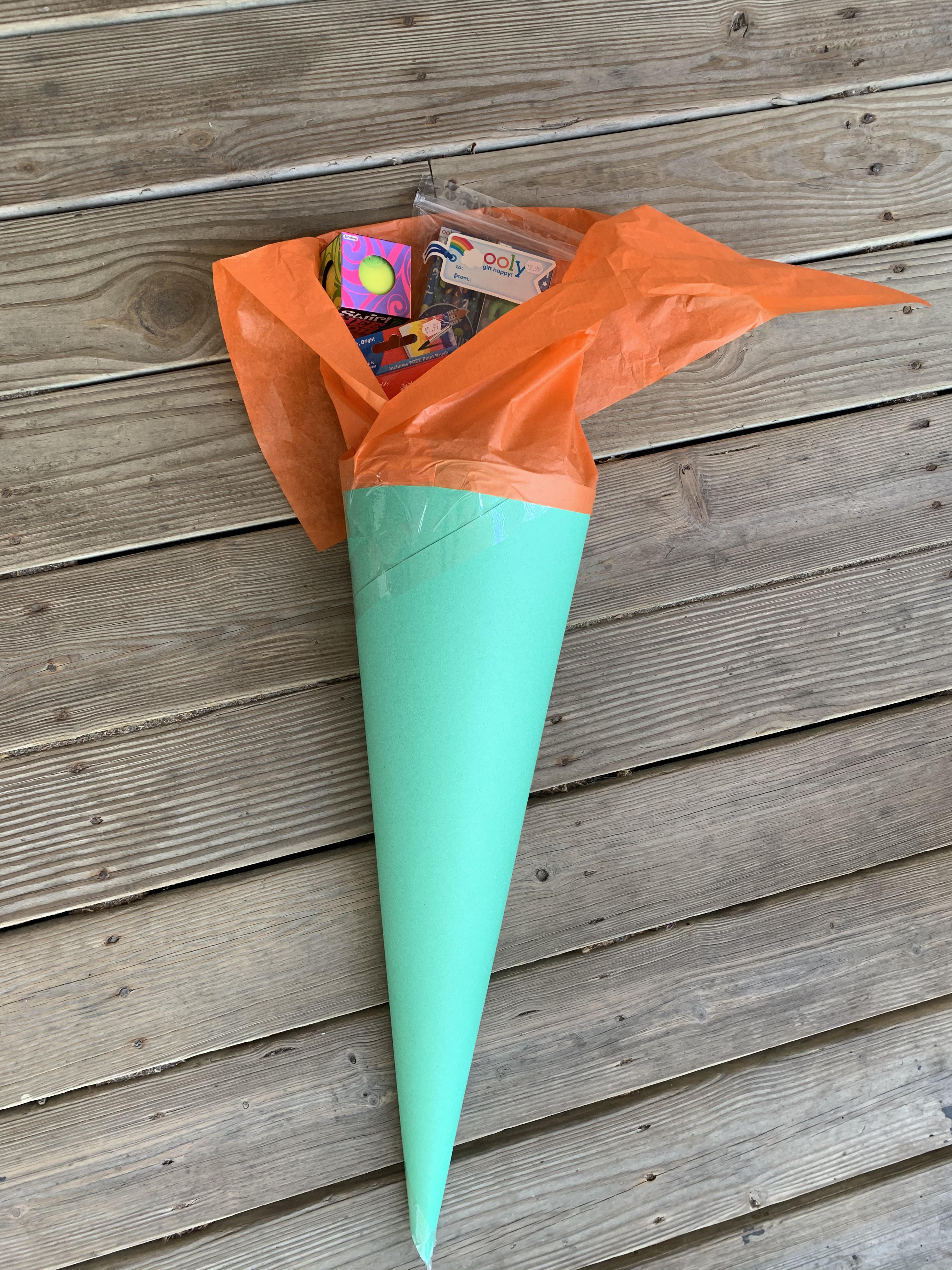 Make the first day of school extra special with the German tradition of Schultüte, a giant cone filled with goodies to celebrate going back to school. Sample items that might be included in cones include: , school supplies, fidget toys, bath bombs, candy, and more.