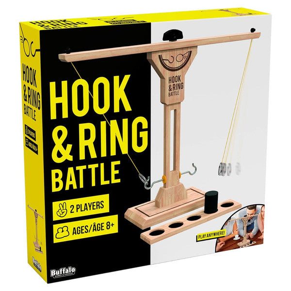 Hook & Ring Battle game is the ultimate fast-paced party game! Go head-to-head against family & friends to land your ring on the hook as many times as possible, as quickly as you can! When you hook your ring, you are one step closer to the win, but move quickly, play doesn't stop & neither does your opponent!