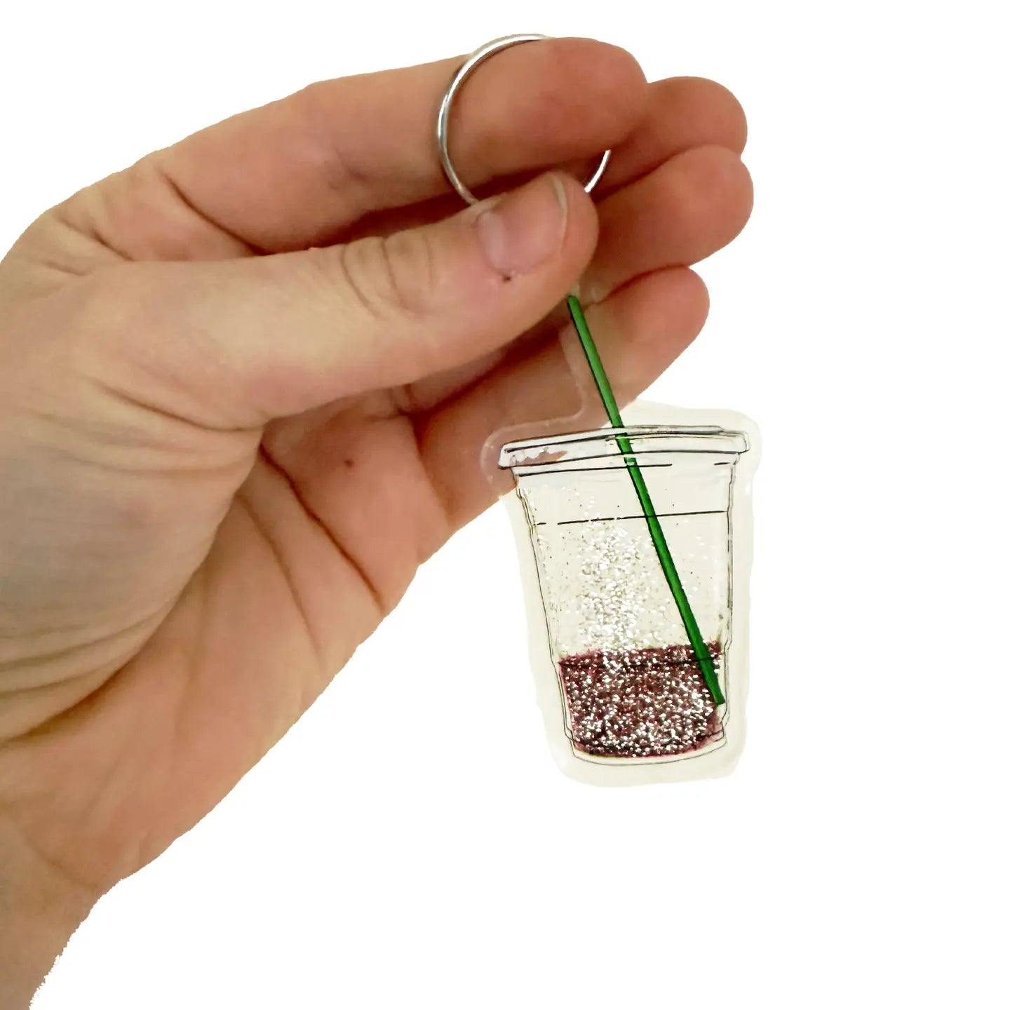 Iced Coffee Liquid Glitter Sparkle Acrylic Keychain Double-sided approx 2.5"