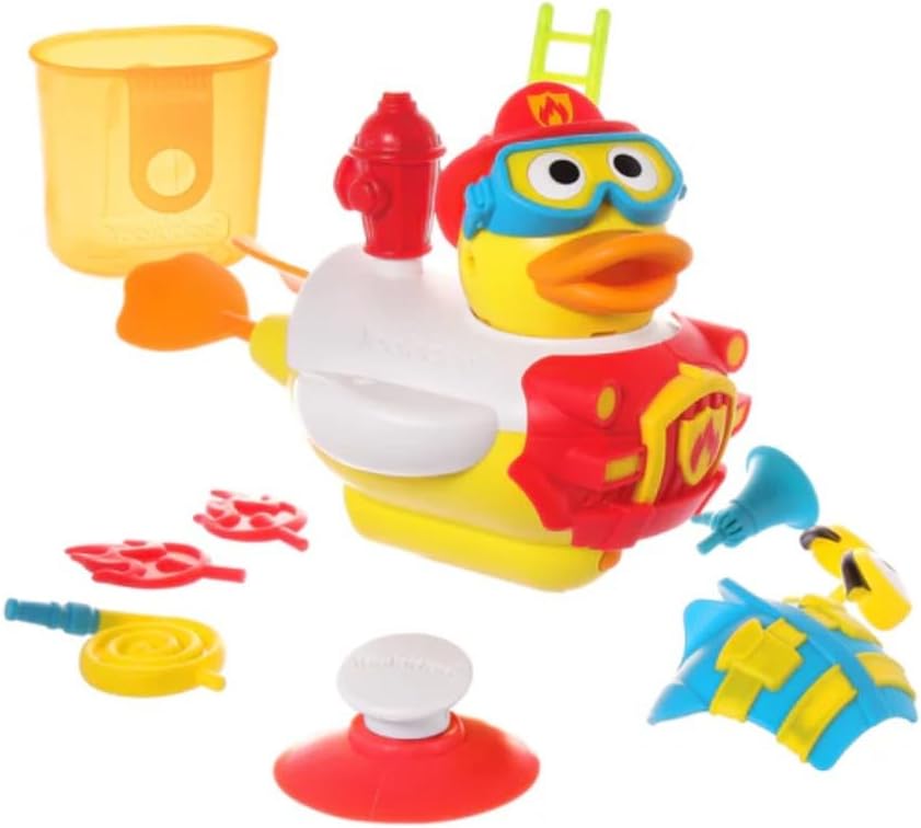 When the hard day’s work is done, scoop its accessories into the orange container, attach it to the side of the tub, and place the firefighter on top, ready for another exciting bath tomorrow.