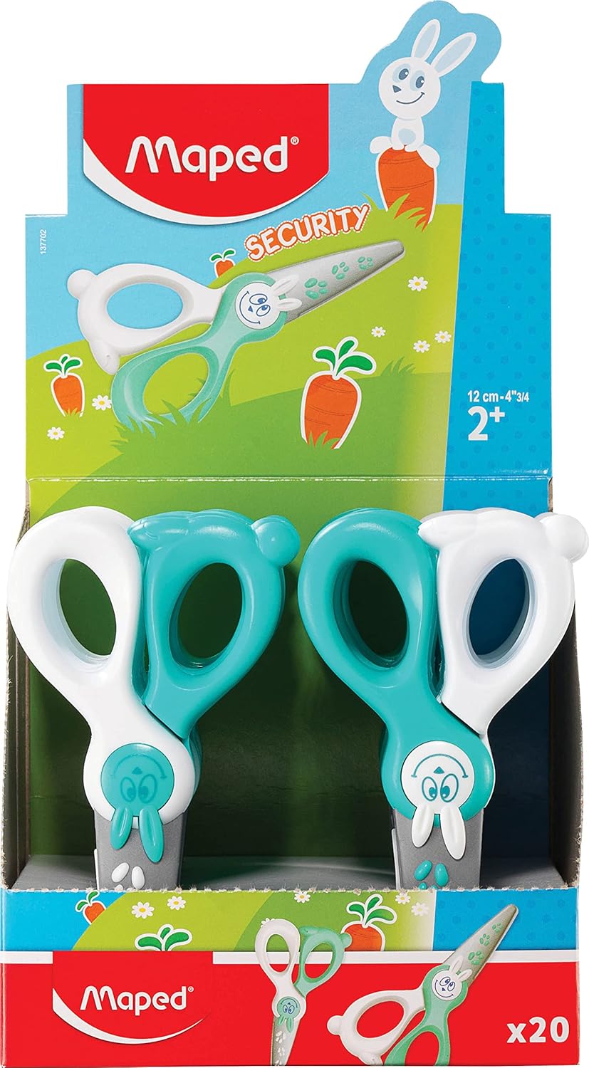 Maped® 5" Kidicut safety scissors. The perfect first scissors for young children ages 3 and up. Fiberglass reinforced plastic blades for greater cutting efficiency. Cuts paper only. Won't cut hair, skin or clothes. Assorted colors.