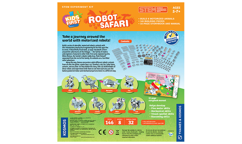 Robot Safari provides an engaging way to teach simple engineering concepts to young children, allowing parents, teachers, and caregivers to lay the groundwork for strong STEM-related skills and comprehension at an early age. Model building and experiments develop fine motor skill, mechanical engineering skills, visual-spatial skills, and reasoning and concept development skills.