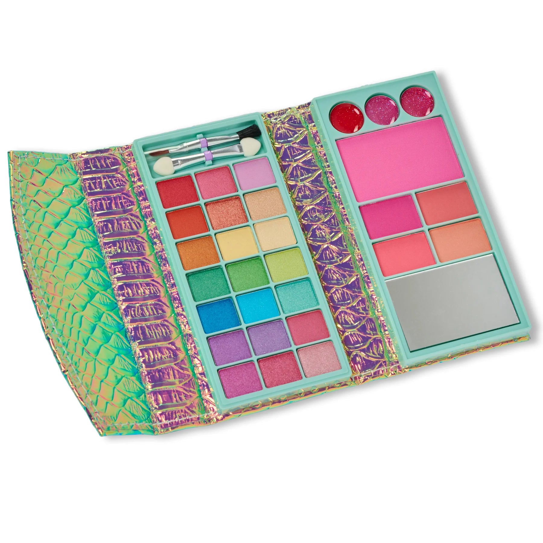 This beautiful holographic purse, which simulates a mermaid's tail, includes all the essentials to achieve the most fantastic makeup during your play sessions. Contains 21 eyeshadows with and without glitter, 5 blushes, 3 lip glosses and 2 applicators. With mirror included!
