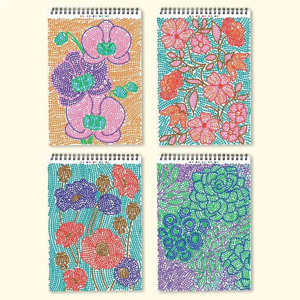 Lifelines FlowArt Pads are guided art meditations designed to help you achieve a calming flow state. Each scene is thoughtfully crafted to encourage repetitive, relaxing movements, promoting mindfulness and reducing stress. Dot-by-Letter includes 20 meditative scenes and four double-sided markers in a detachable storage tray. Engage in a meditative dotting activity using a guided letter key to fill the page with vibrant dots, creating beautiful botanical scenes. Simply match the colors to the letters, and let the rhythmic motion of dotting bring you a sense of calm. Compact and portable, this pad is perfect for calming your mind on-the-go, unwinding before bed, or taking a work or study break to de-stress.