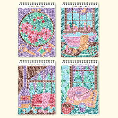 First, choose a color for each letter and fill in the key at the top of the page. Then, follow the key to dot the letters on the page, creating a charming collection of snow-day comforts.