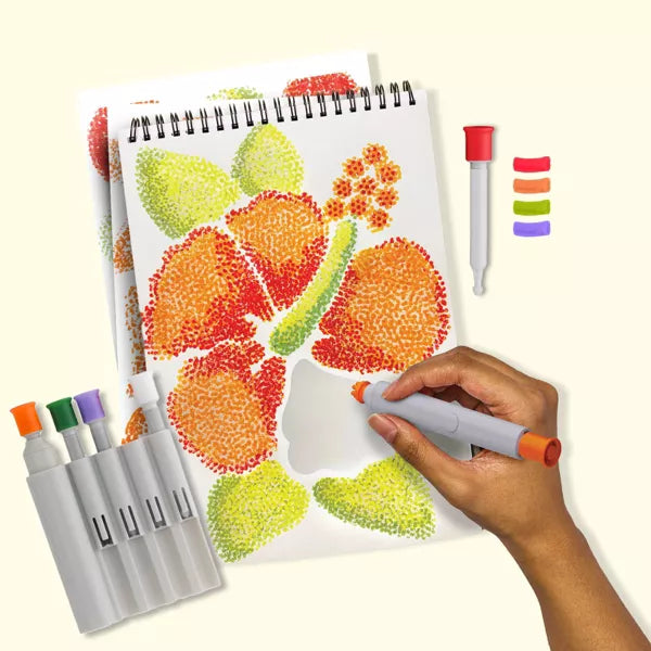 Engage in a meditative dotting activity using the delightfully bouncy "pogo" pen to create a dotted, textural scene. The relaxing, repetitive motion promotes mindfulness and calms your mind.