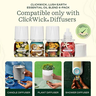 - Lifelines Lush Earth ClickWick Collection: Essential Oil Blends in our innovative ClickWick bottles are designed exclusively for Lifelines ClickWick Diffusers. Immerse yourself in nature's vibrant and grounding scents! 4-pack.