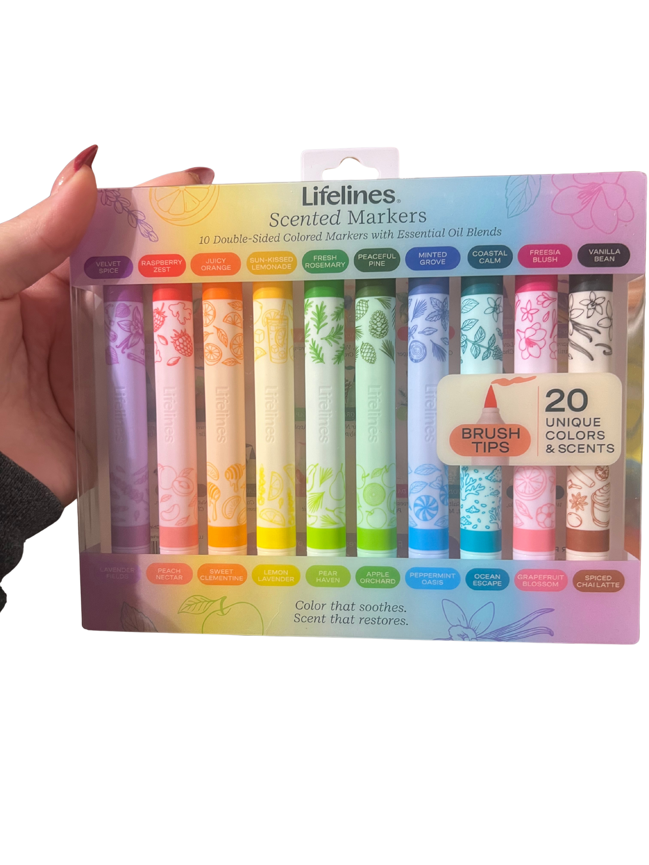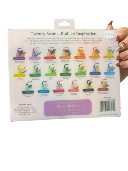 - COLOR OUTSIDE THE LINES: Transform your coloring or drawing into an aromatherapy experience with these fun marker coloring sets featuring essential oil blends to bring you elevated scents and 20 colors in 10 dual-ended brush tip markers.