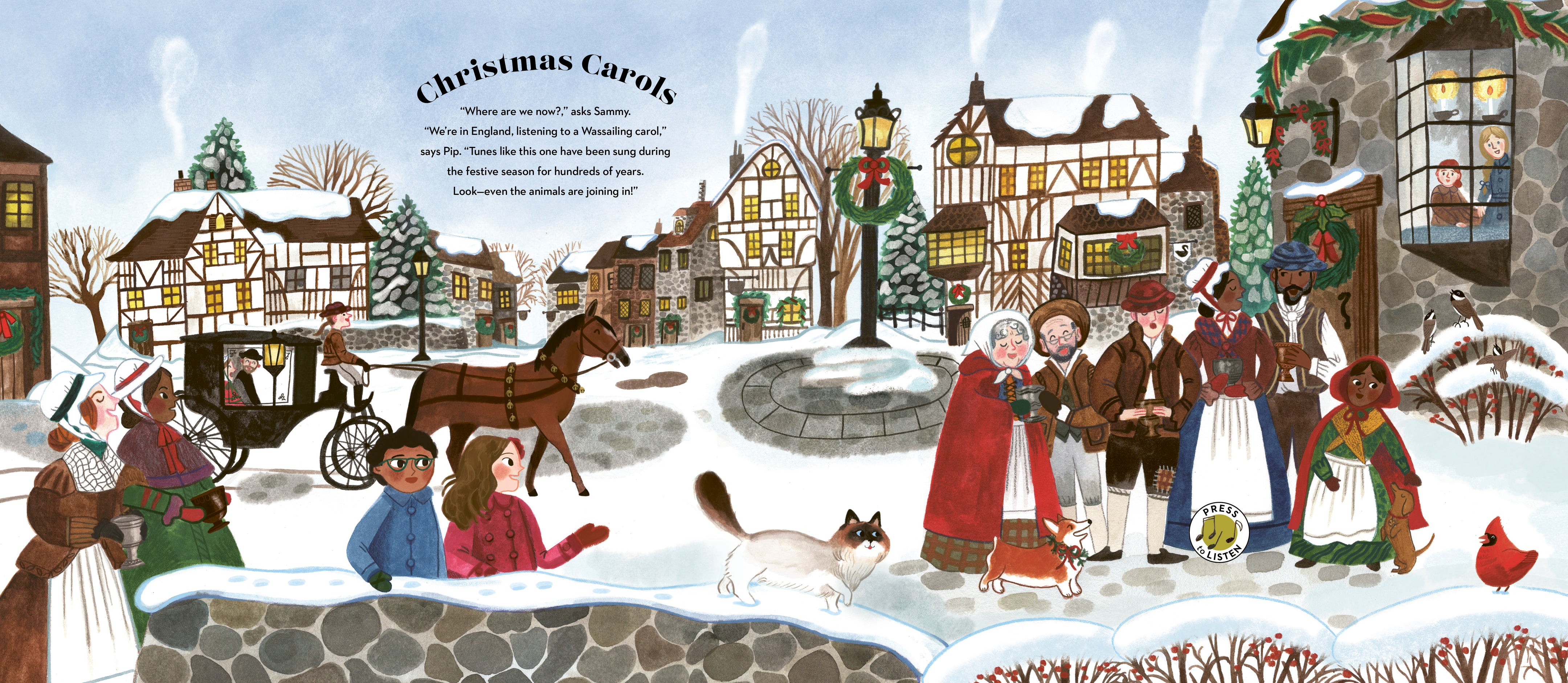 From the exciting Sleigh Ride, to the reflective Sankta Lucia in Sweden, to the exhaultant Hark! The Herald Angels Sing, beautiful sound clips bring the orchestra, choirs and Wassailers into vivid life at the touch of a button in this beautiful book, perfect for the run up to Christmas. This is a perfect, first gentle story book to introduce little ones to the sounds and songs of Christmas.
