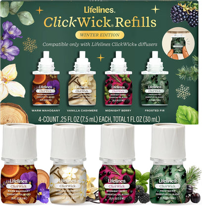 - Lifelines ClickWick Refills Winter Edition: Essential Oil Blends in our innovative ClickWick bottles are designed exclusively for Lifelines ClickWick Diffusers. Delight your senses with winter's comforting and festive scents! 4-pack.