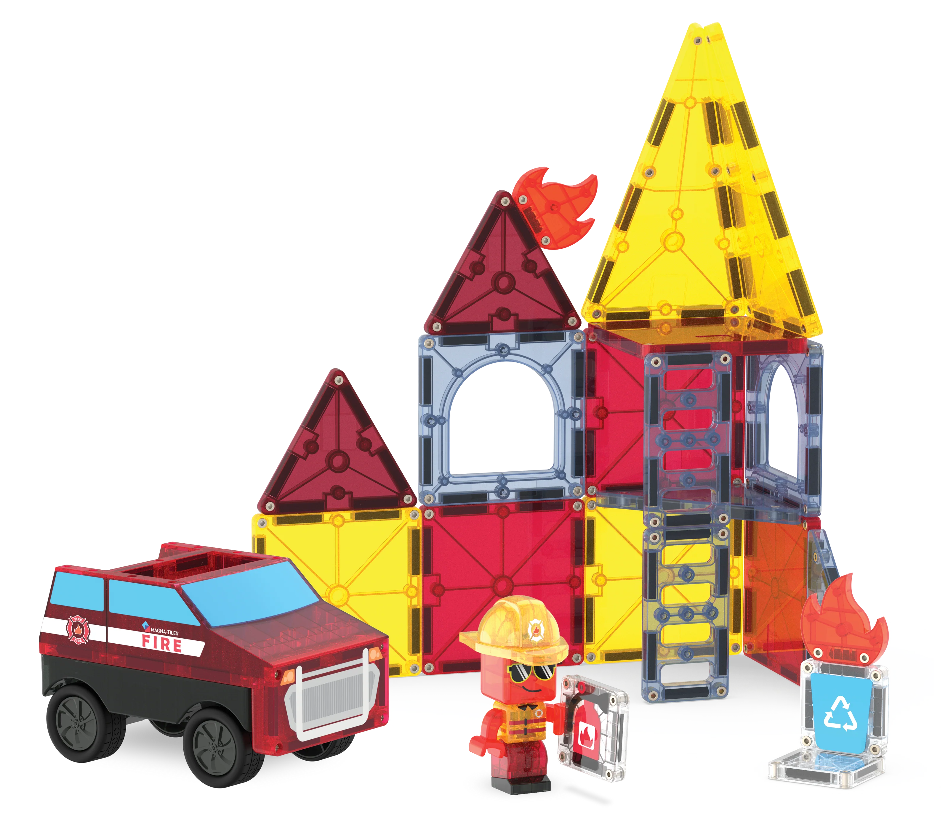 Embark on exciting firefighting missions with MAGNA-TILES Fire Rescue! Send the fire chief car and figure into action at top speed with the Pullback Chassis. Enhance the action with realistic Fire Tiles to knock down and ladders to climb, reaching every blaze in the nick of time. Designed to spark creativity and encourage imaginative play, MAGNA-TILES Fire Rescue complements the Fire Station Set for even more dramatic rescue operations. Together, the Fire Rescue and Fire Station Sets turn your MAGNA-TILES city into a hub of teamwork, excitement, and heroism. Who’s ready to answer the call and save the day?