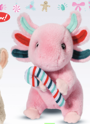 6.5" tall mini axolotl with matching candy cane