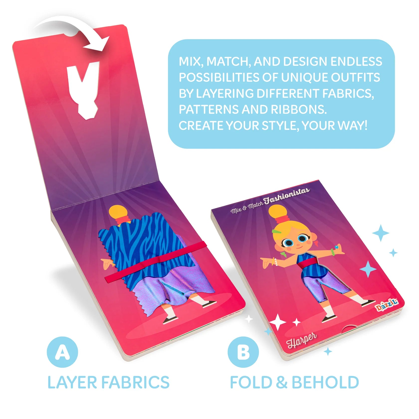 Layer fabrics then fold and behold! Mix, match and design endless possibilities!