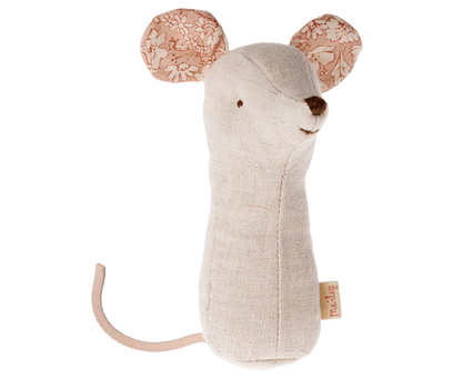 Lullaby friends is a collection of beautiful items for babies. This rattle is perfectly shaped for a small hand and has a stimulating rattle sound. It is made in soft fabrics with unique prints and packed in a beautiful gift box.