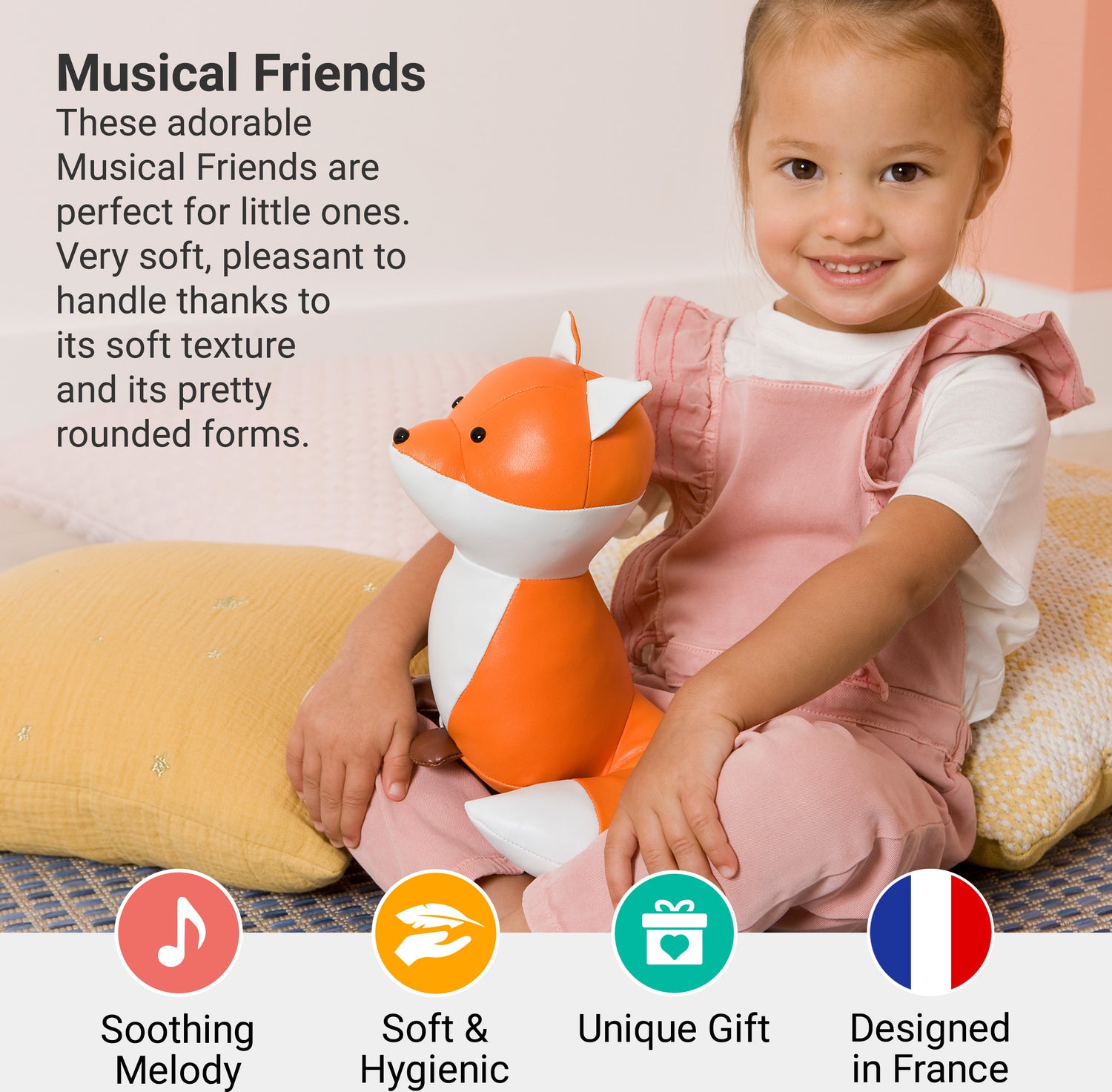 Richard the Fox is a sweet music box that will soon find its place in your nursery. Richard is pleasant to handle thanks to its soft texture and its pretty rounded forms. Richard the Fox plays "The Bluebells of Scotland."
